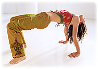 place your hands at the back of your thighs below the buttocks. Curl your toes under, and arch your back as you inhale, letting